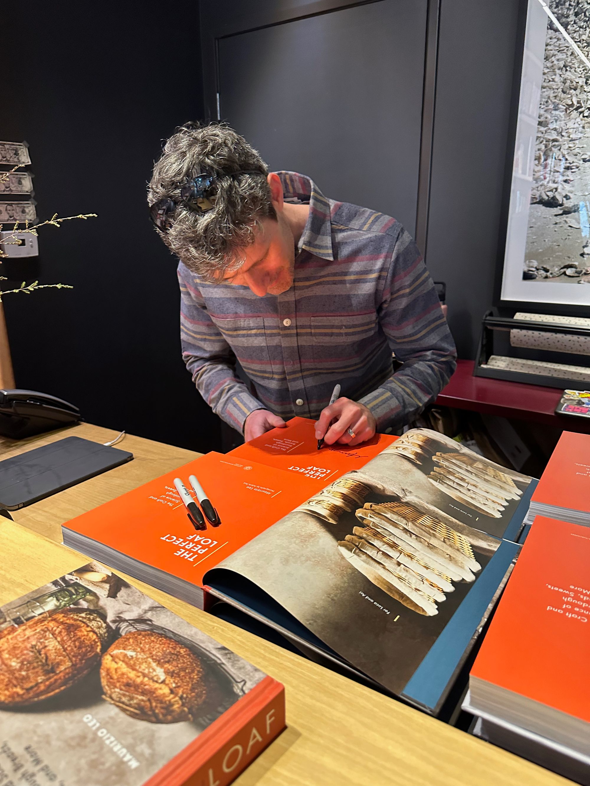 Left: me signing The Perfect Loaf; Right: Ken, the owner of Now Serving.