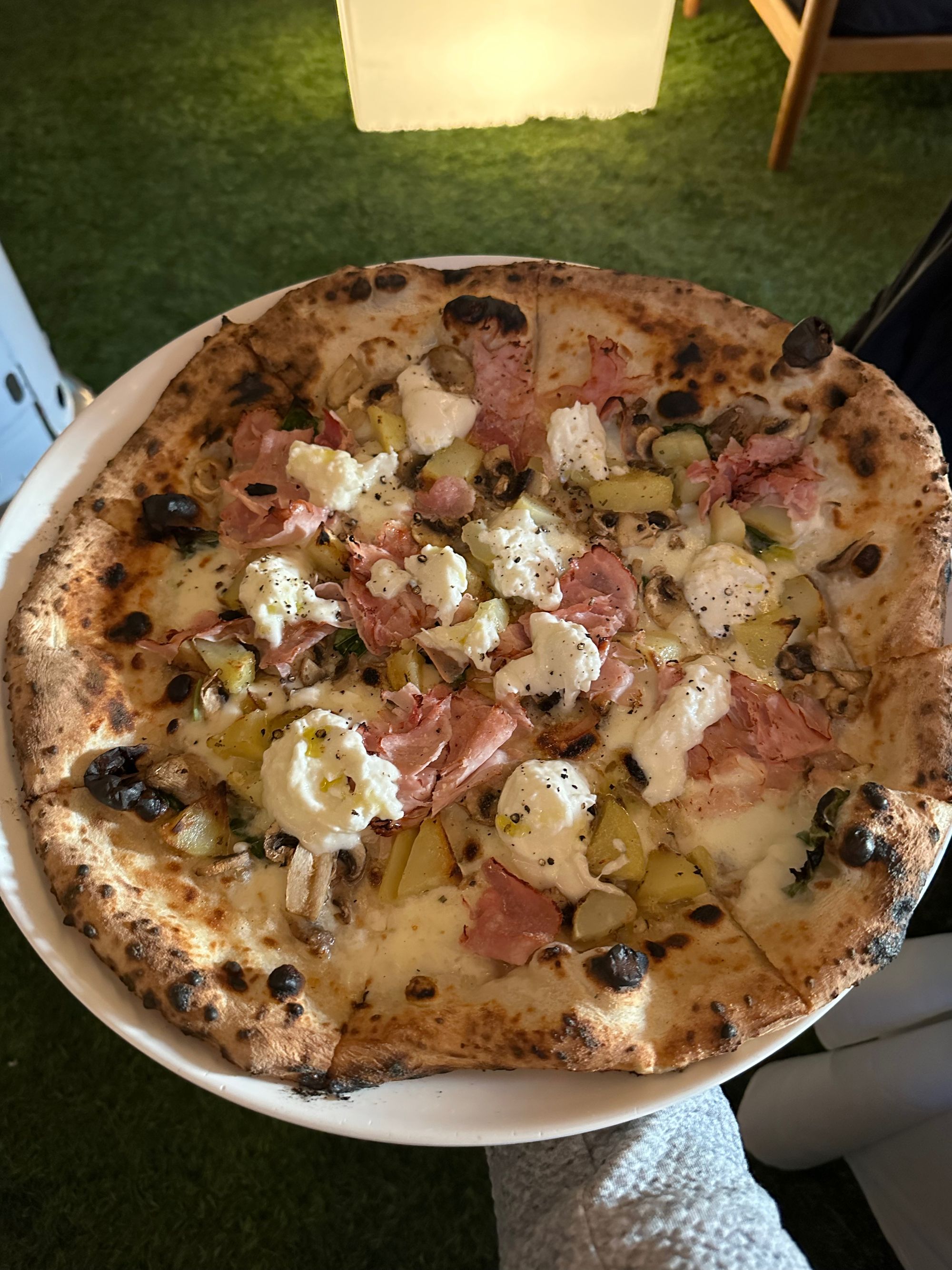 I'm always keen on a good pizza. And when the menu has one, you could bet good money I'll order it. This was the special, a pizza with burrata, pancetta, olive, mushroom, and cracked pepper. It was absolutely delightful—and I ate the entire thing.