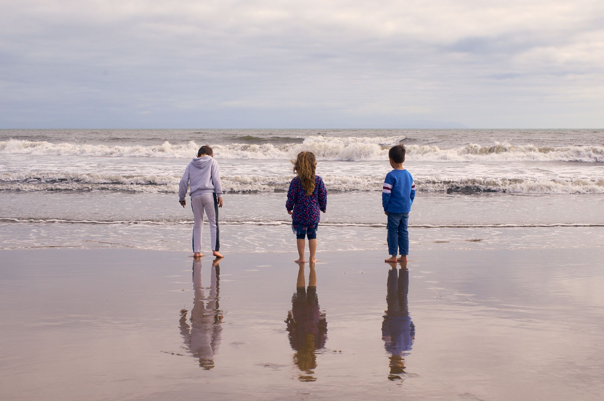 The beach was grey and the water turbulent and the wind disagreeable, but that doesn't stop kids. They had fun traipsing and splashing in the water, as kids do—even without bathing suits. We sometimes lose that as adults, the ability to push aside consequences (sand everywhere! soggy jeans!?) and how-it-should-be to just have fun in the moment. So we let them play.